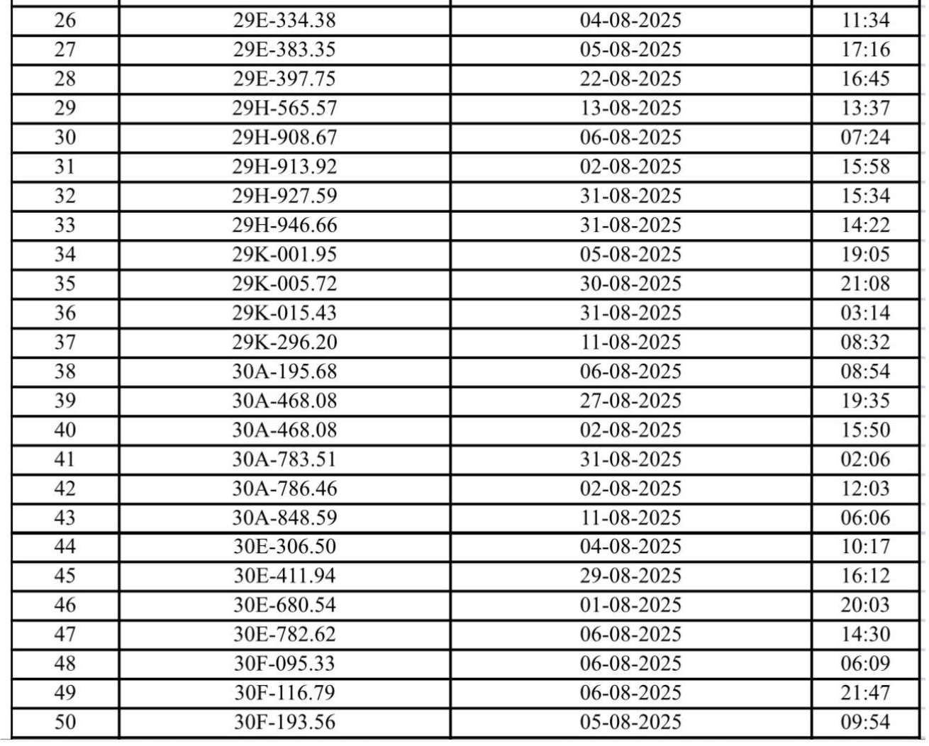 Danh sách 37 xe mô tô vi phạm bị phạt nguội trong tháng 8 tại Hà Nội.