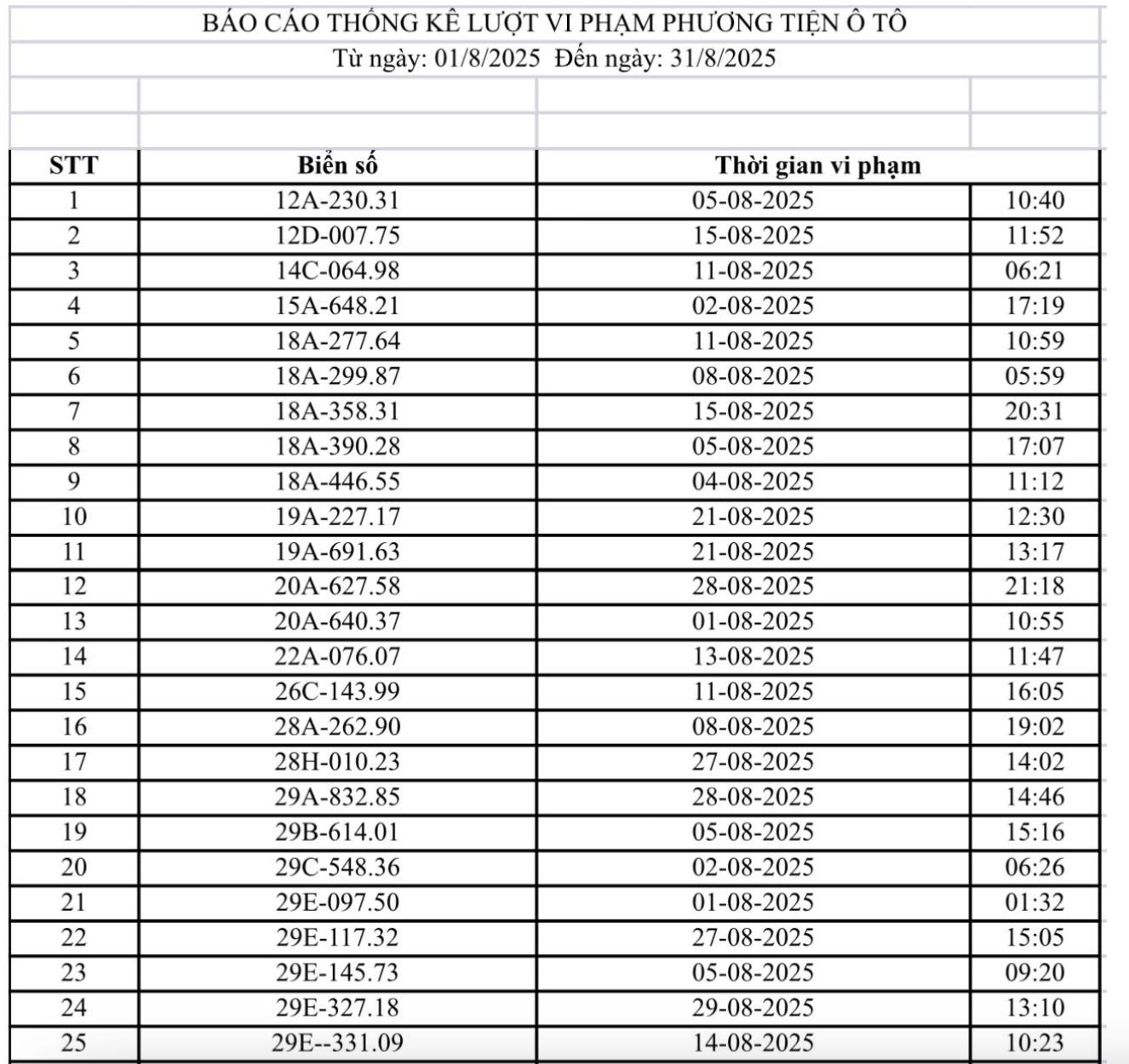 Trong tháng 8/2025 (từ ngày 1/8 đến 31/8/2025), thông qua hệ thống camera giám sát giao thông, Phòng CSGT Công an TP Hà Nội đã phát hiện 131 trường hợp phương tiện vi phạm, gồm cả ô tô và mô tô.