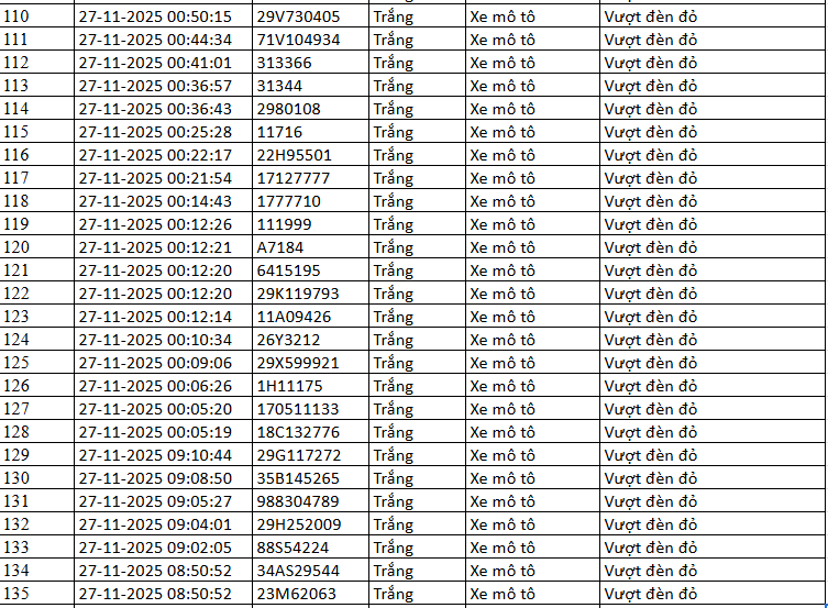 Cập nhật danh sách 305 xe máy vi phạm vượt đèn đỏ bị phạt nguội theo Nghị định 168. Tra cứu biển số, thời gian vi phạm và hướng dẫn tra cứu phạt nguội mới nhất năm 2025.