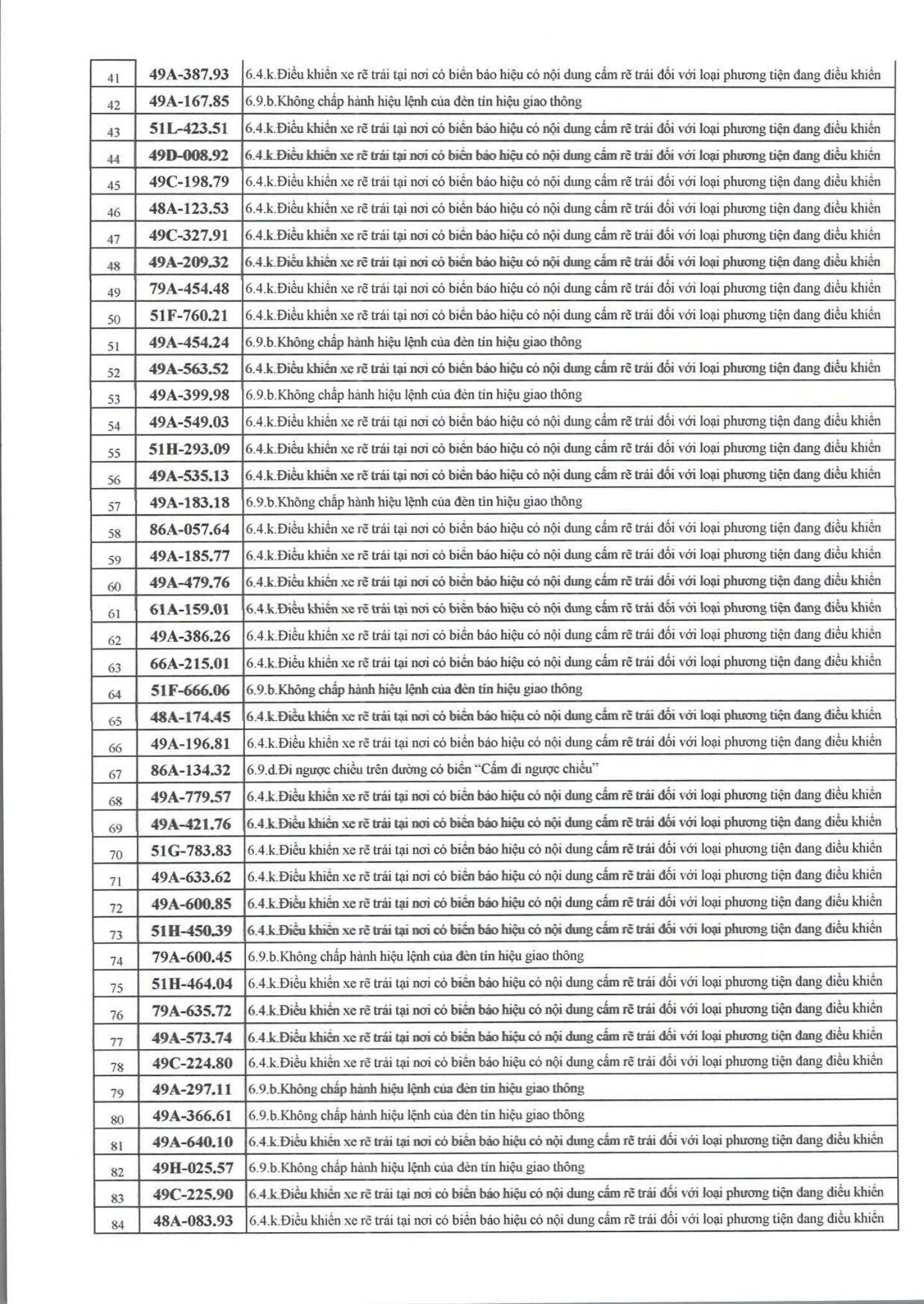 Các chủ phương tiện có tên trong danh sách vi phạm cần nhanh chóng liên hệ Phòng CSGT Công an tỉnh Lâm Đồng hoặc Đội CSGT địa bàn để thực hiện nộp phạt theo đúng quy định.