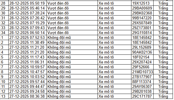 Toàn bộ các trường hợp vi phạm đã được lập hồ sơ, trích xuất hình ảnh và gửi thông báo xử lý theo hình thức phạt nguội theo đúng quy định của pháp luật.