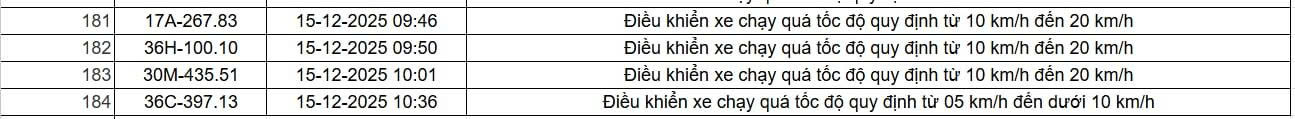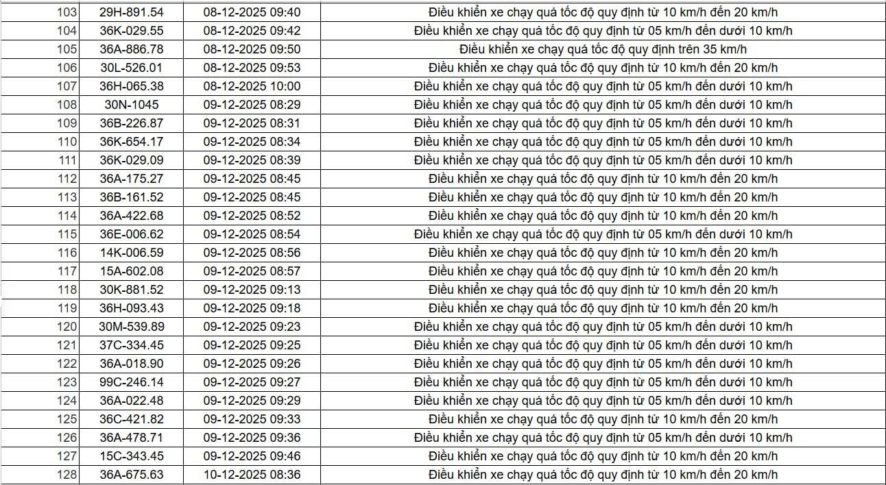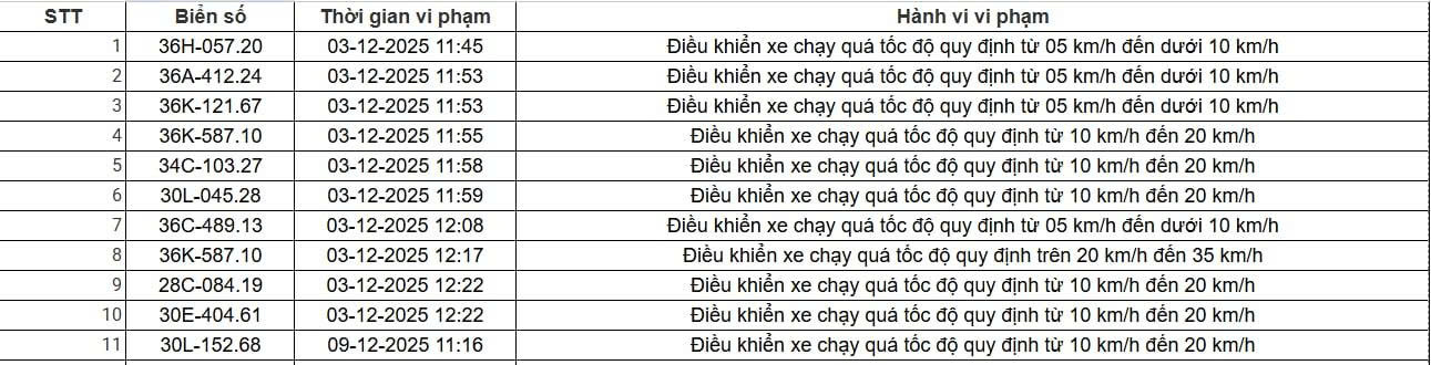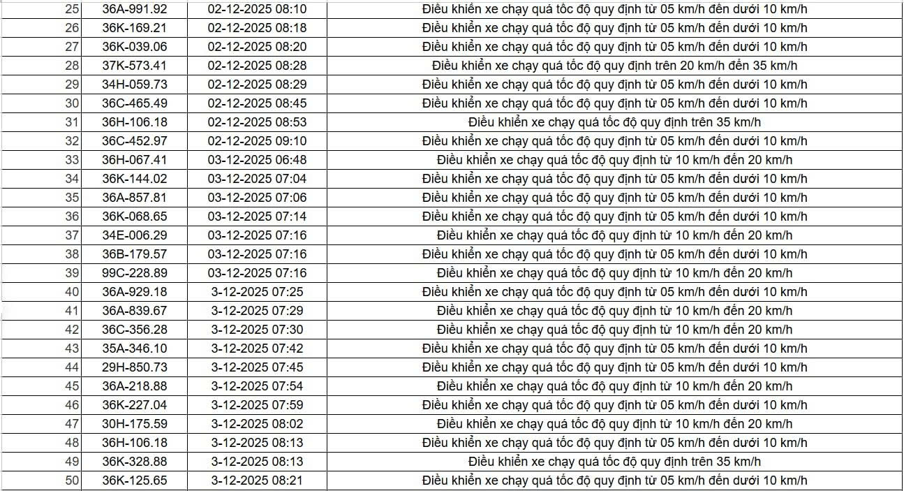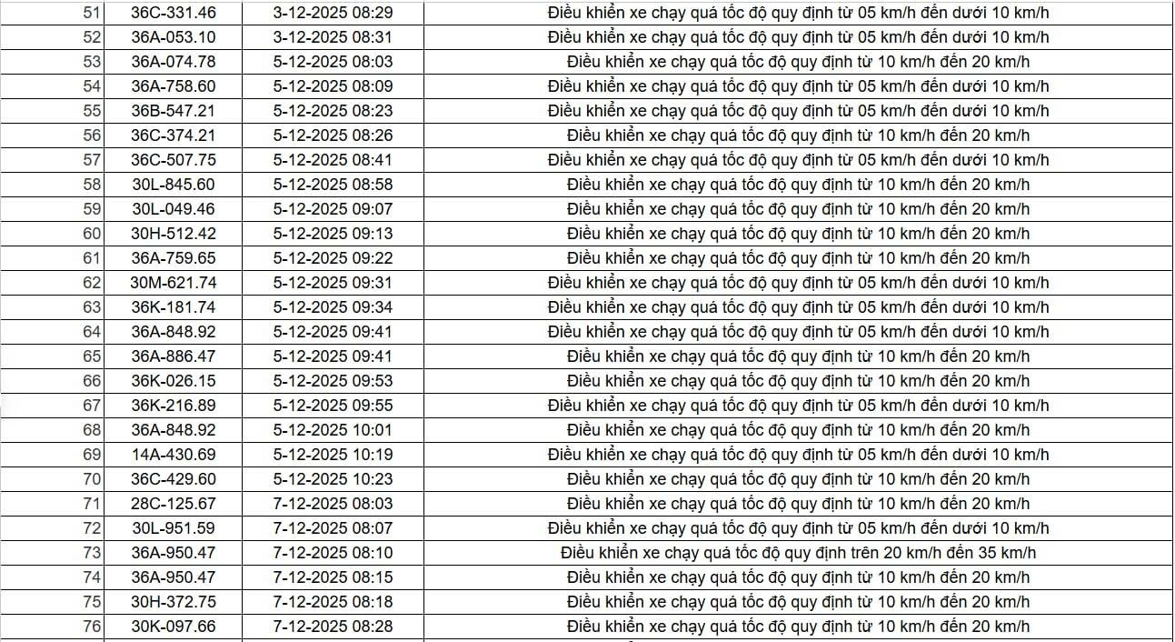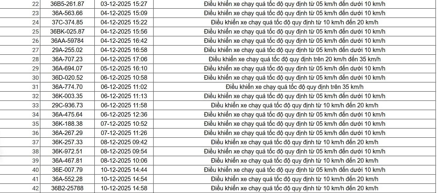 Danh sách xe vi phạm tốc độ bị phạt nguội tại Thanh Hóa đầu tháng 12/2025